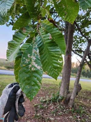 Once a major resource, and source of income from lumber and food in the Appalachian Mountains the American chestnut tree went virtually extinct within only 40 years of the arrival of Blight on imported trees. The native chestnut tree had no natural resistance and the Blight spread quickly. Native chestnut trees once numbered 3-5 billion trees, that's 1 in 4 trees, to maybe 300 fruiting trees today.
