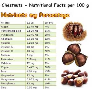 High in Fiber - Eating just 10 roasted chestnuts provides 17% of the recommended daily amount.